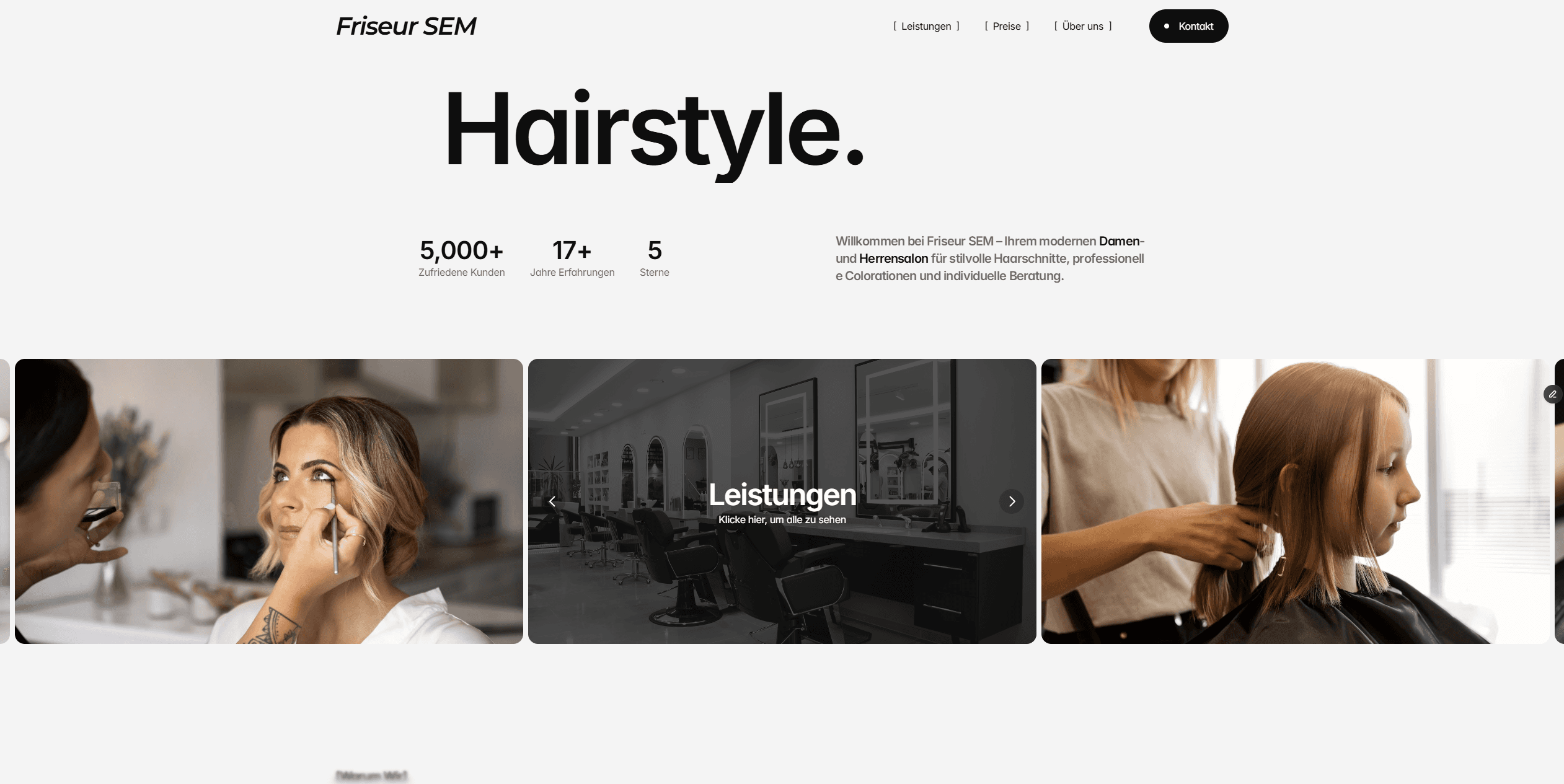 Die Zusammenarbeit mit Friseur SEM führte zu einem modernen, professionellen Markenauftritt. Das neue Logo, das konsistente Branding und die hochwertige Webseite stärken die Wiedererkennbarkeit des Salons und unterstreichen dessen Qualitätsanspruch.